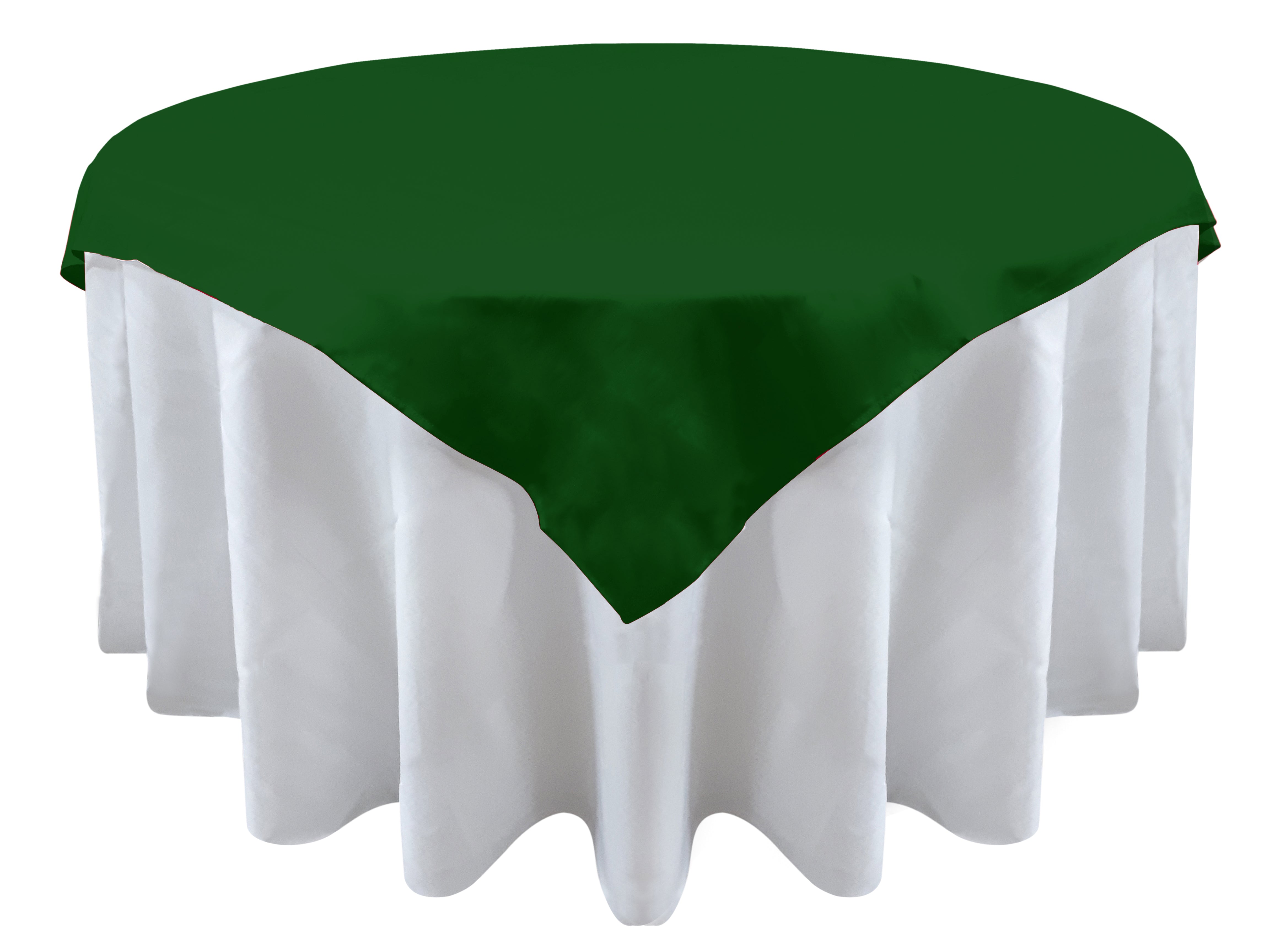 Product description: This square 62'' x 62'' tablecloth can be used directly over a square table or on top of a round tablecloth on a round table as an overlay....